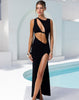 Turn heads in the ultimate statement dress.  The This Is It Maxi dress features daring cutouts, a sleek high slit, and a curve-hugging fit for the perfect mix of sexy and sophisticated. Whether it's a night out or a luxe resort getaway, this black dress is your go-to for bold, confident style.