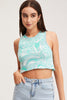 Features: Abstract Print, Cropped Length, Round Neckline, Stretch Fabric