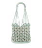 From the Plèi collection, which puts leather off-cuts front and center, the “Solé” model blends innovation and artisanship. Made in France, the 240 pebble-like pearls are created using leather off-cuts from Polène collections. They are then threaded onto waxed cotton cording and held in place by 120 handmade knots using the traditional technique of macramé. Leather detailing embellishes this net-inspired bag with its stitched smooth leather base and handle.