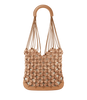 From the Plèi collection, which puts leather off-cuts front and center, the “Solé” model blends innovation and artisanship. Made in France, the 240 pebble-like pearls are created using leather off-cuts from Polène collections. They are then threaded onto waxed cotton cording and held in place by 120 handmade knots using the traditional technique of macramé. Leather detailing embellishes this net-inspired bag with its stitched smooth leather base and handle.