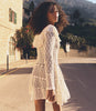 Made entirely by hand, the DÔEN Heirloom Capucine Dress is a treasure meant to be cherished for years to come. Drawing inspiration from the hand-knit lace of the Victorian era, the Capucine features a wide scoop neckline with a crochet ruffle, a fitted bodice, long sleeves, and a swingy mini skirt.