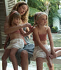 An easy pull-on short for littles, the Echo is crafted from crisp organic cotton poplin and features an elastic waistband framed with ruffles and a grosgrain ribbon tie. Delicate pintucks and embroidered scallop detailing accent the hems.