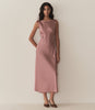 In a textured silk-blend seersucker adorned with our ‘50s-inspired Valencia Gingham, the Mariselle Dress is a sleeveless midi-length dress with a bateau neckline and adjustable shoulder ties. A bias-cut silhouette falls to mid-calf.