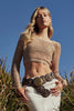 Beige Crochet Knit Top Long Sleeve Square Neck